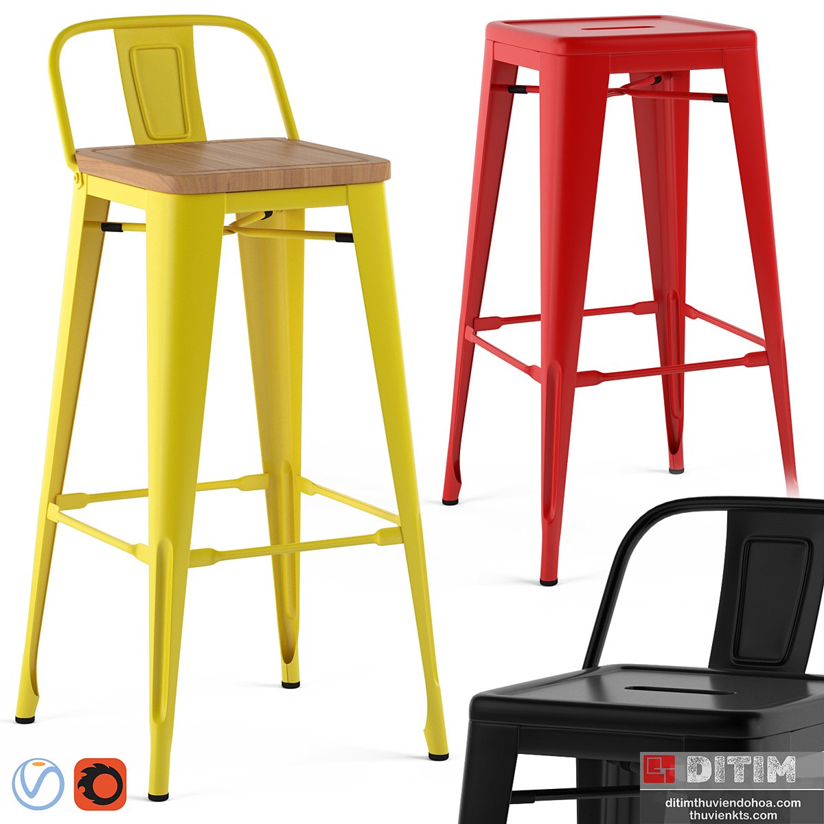 | 3ds max- | Tolix stools |