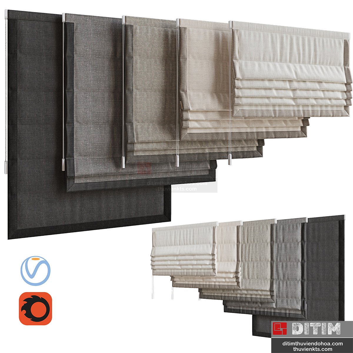 • Tên file 3dsmax: | Set of Roman blinds 7 |