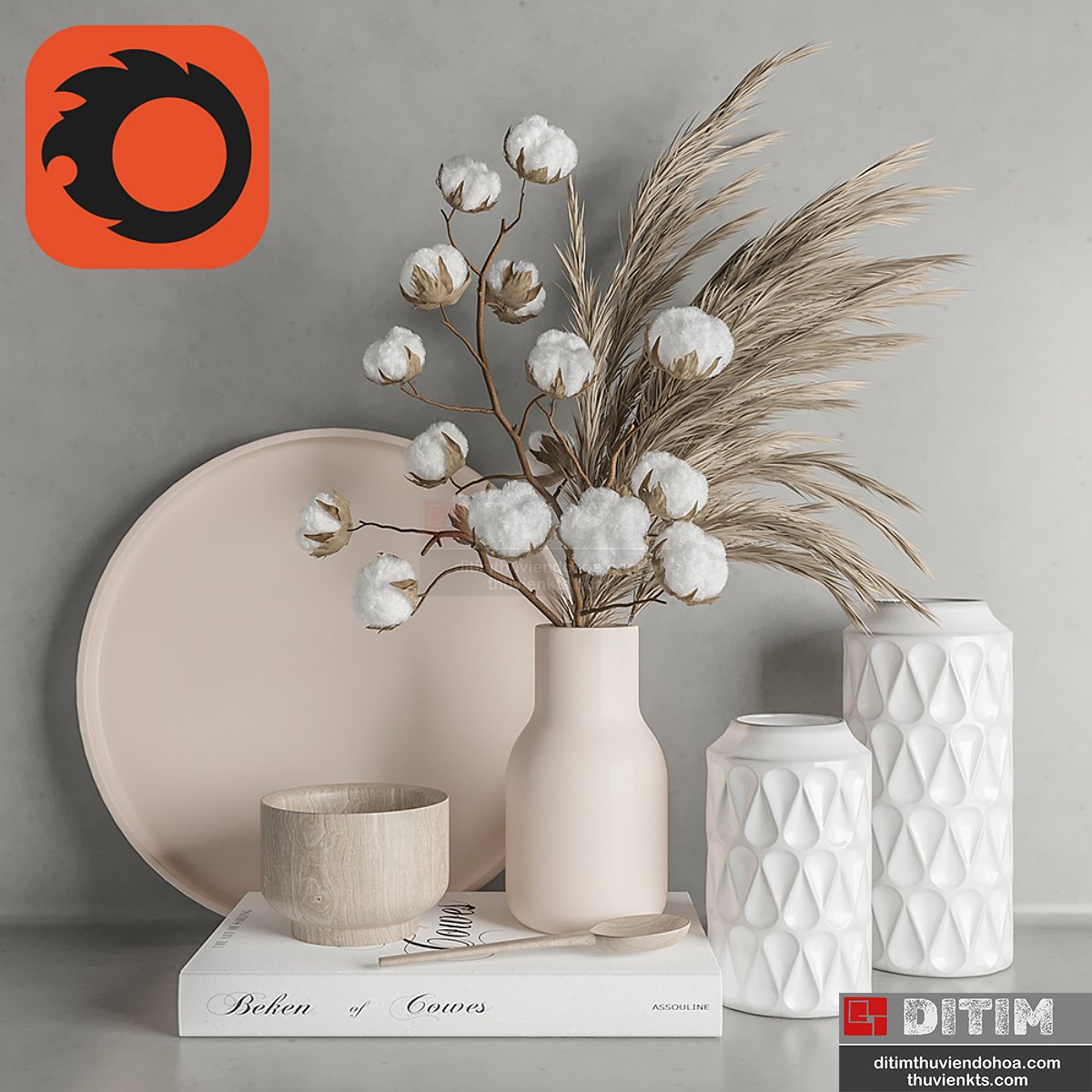 | • Tên file 3dsmax: | Decoration Set 22 Cotton and Vase. |