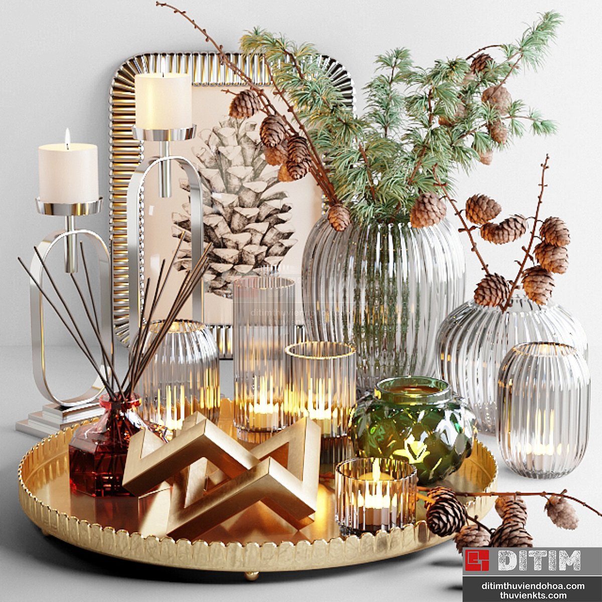 | • Tên file 3dsmax: | Decorative set with larch branch and candles |