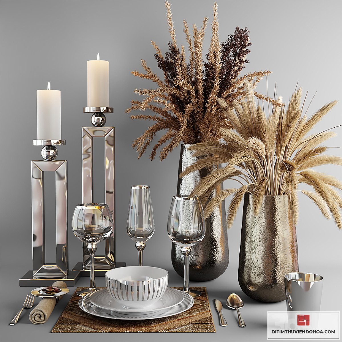 | • Tên file 3dsmax: | Decorative set with dishes and bouquets of dry grass |