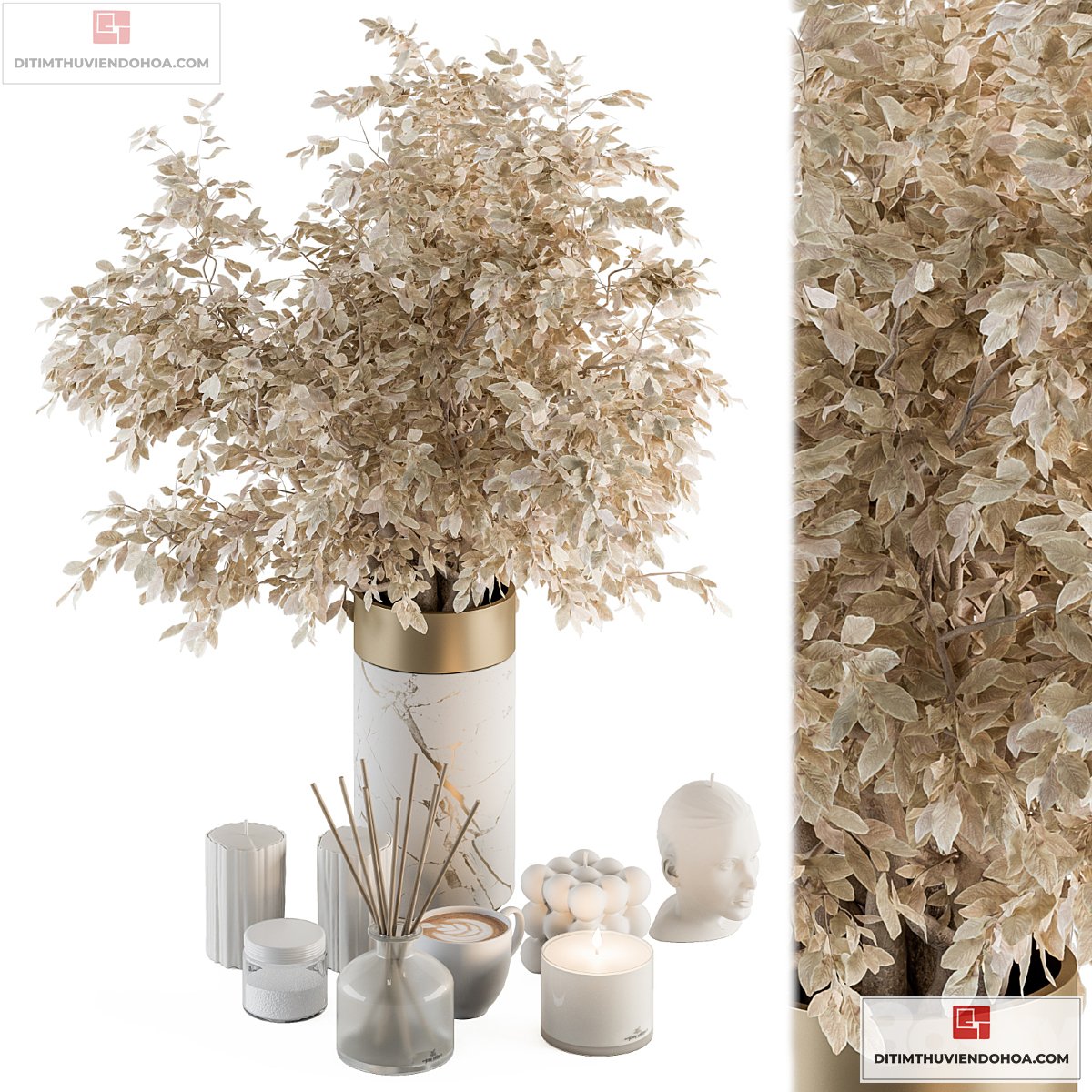 | • Tên file 3dsmax: | white and Gold Decorative Set with Dried plant – Set 106 |